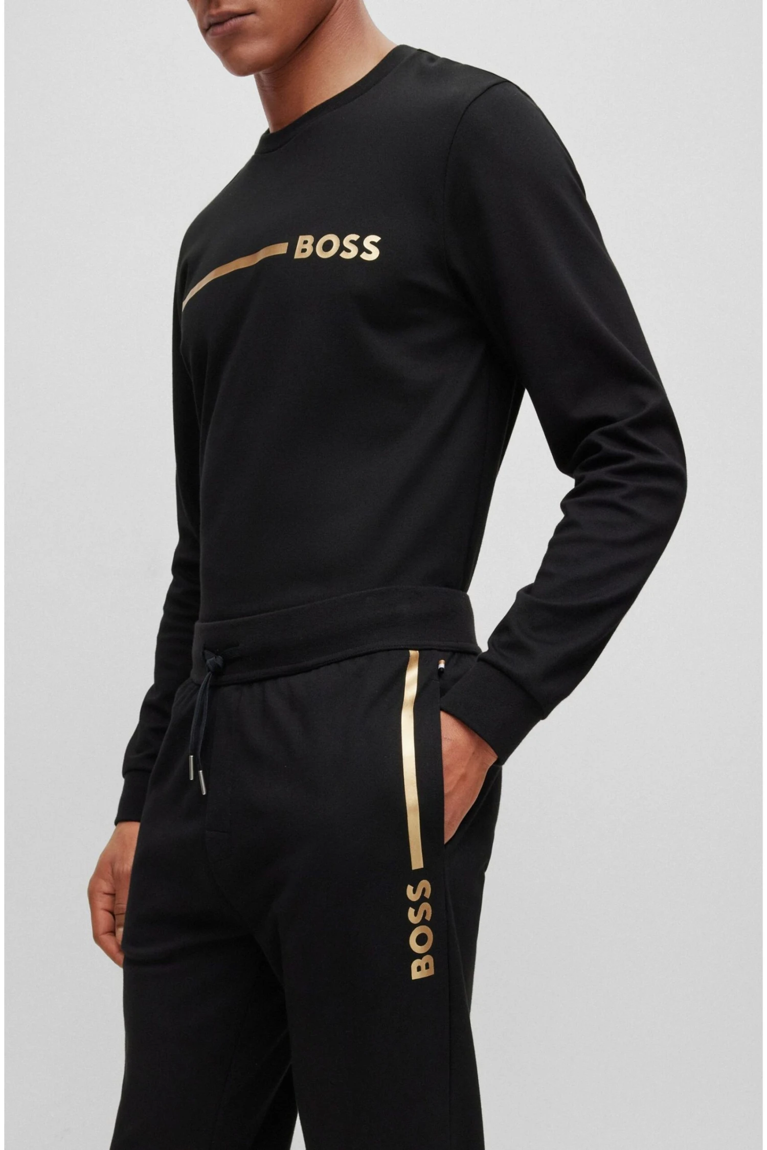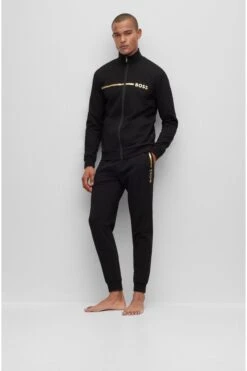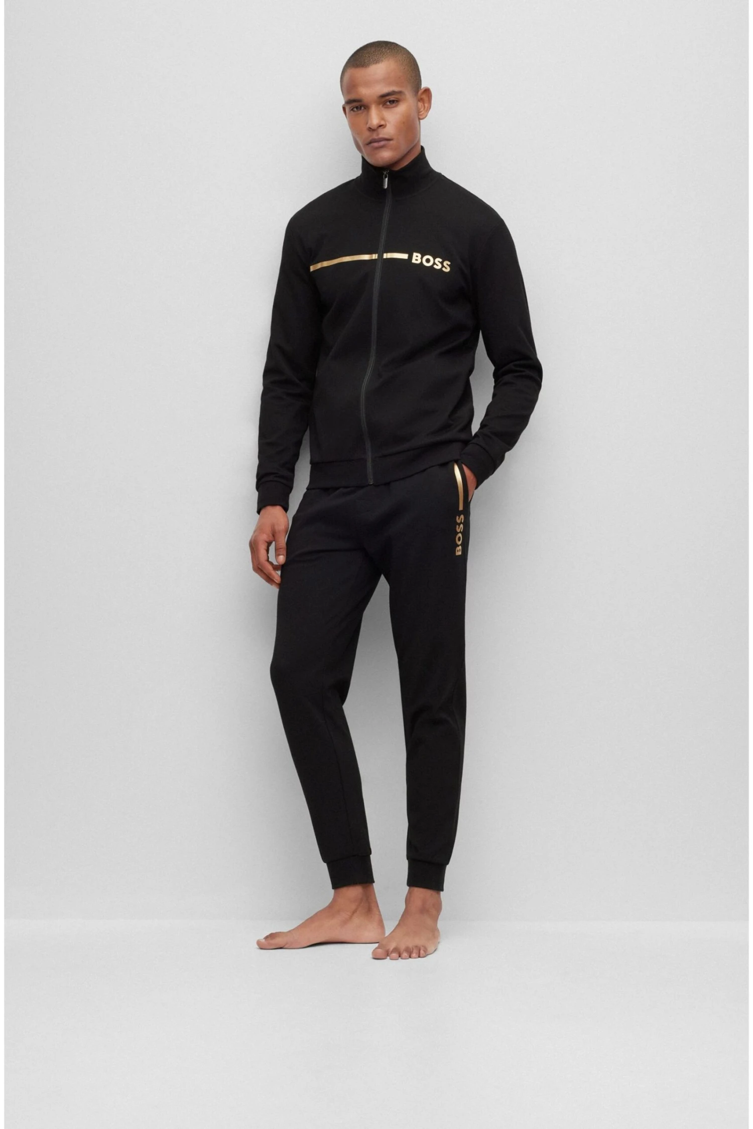 Featuring loungewear pants out of cotton polyester piqué fabric, full double dye fabric used as main body colour, logo print on the leg, corporate striped flag label in the side seam.