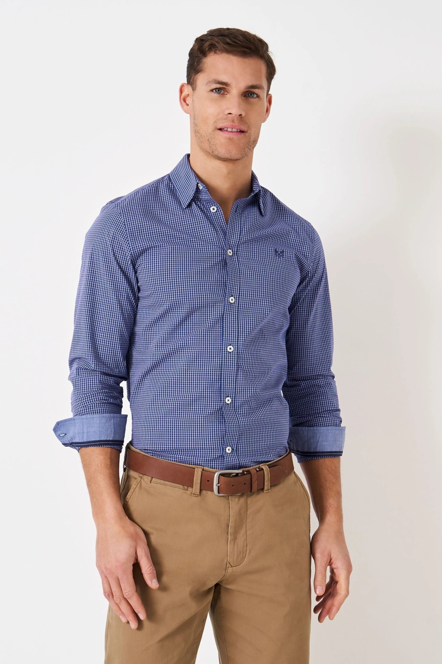 Crew Clothing Company Blue Check Print Cotton Classic Shirt