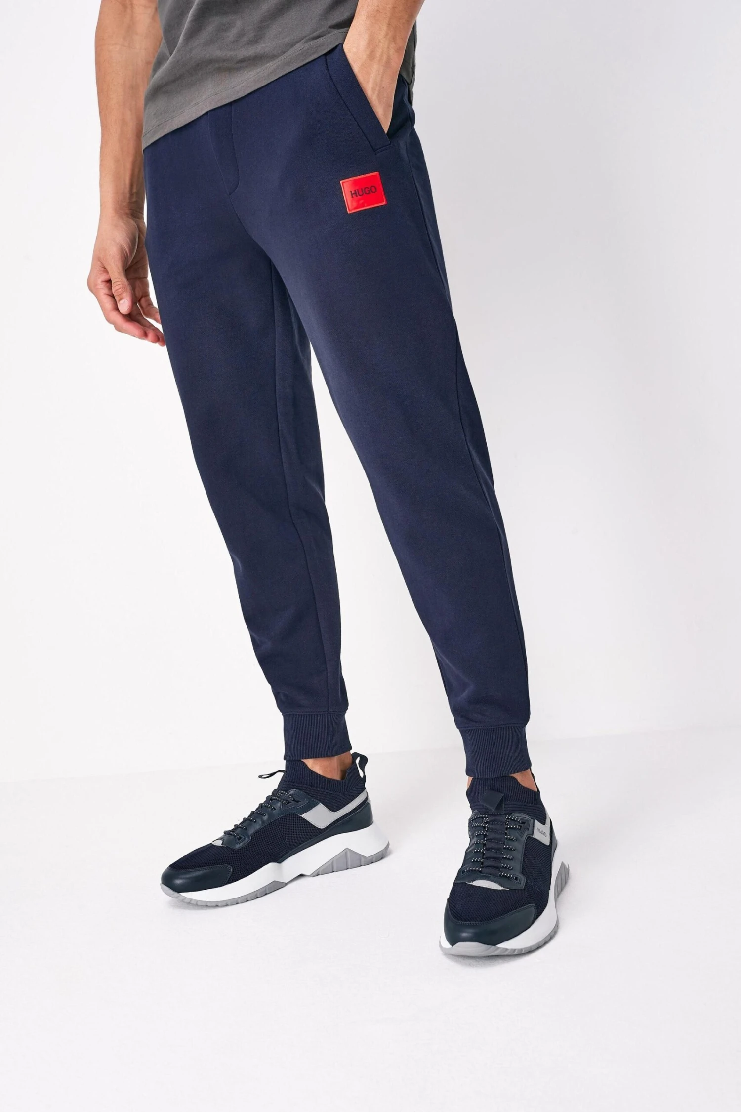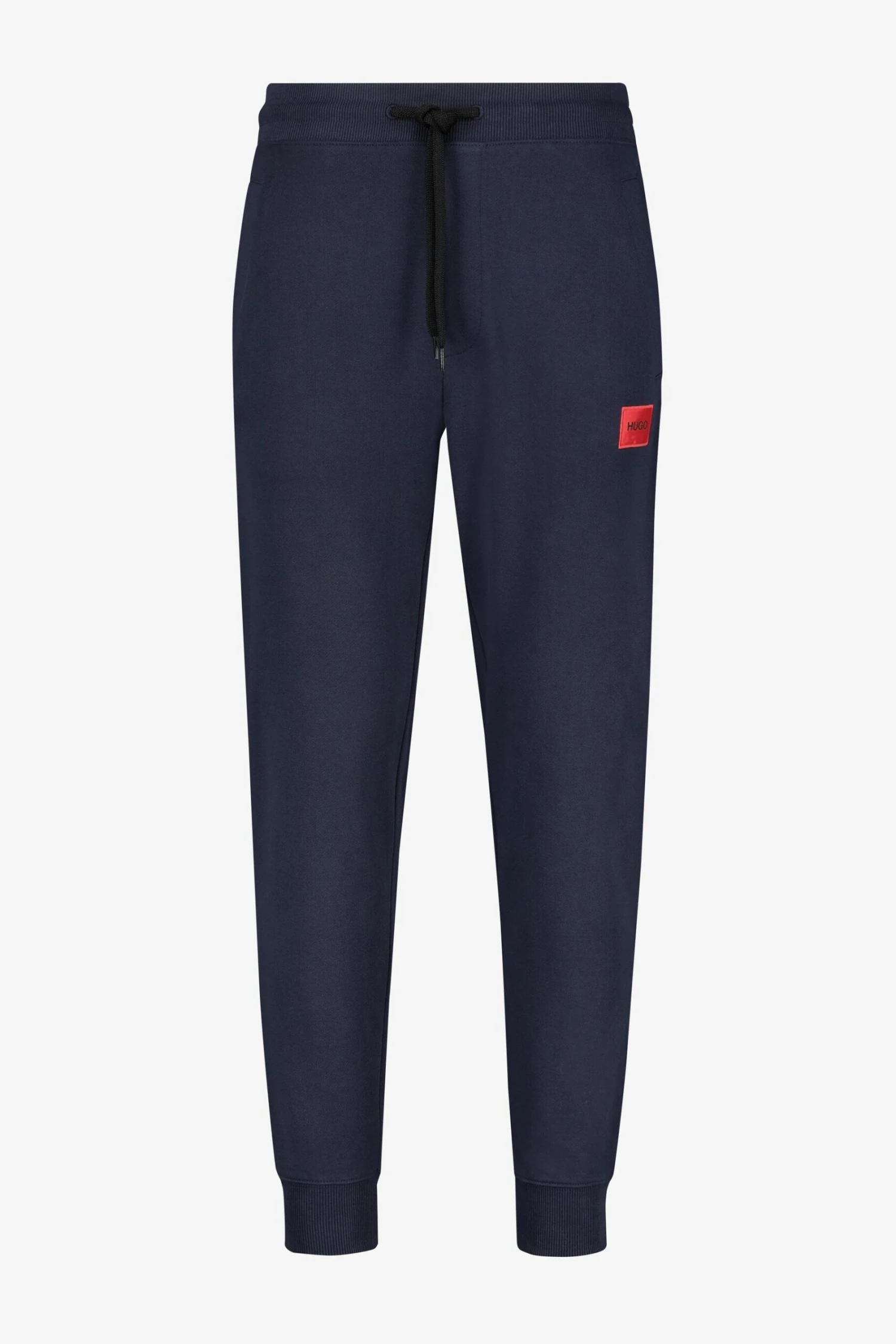 This long jersey trousers features drawstring for high comfort . COmplete with HUGO red woven label at left side.
