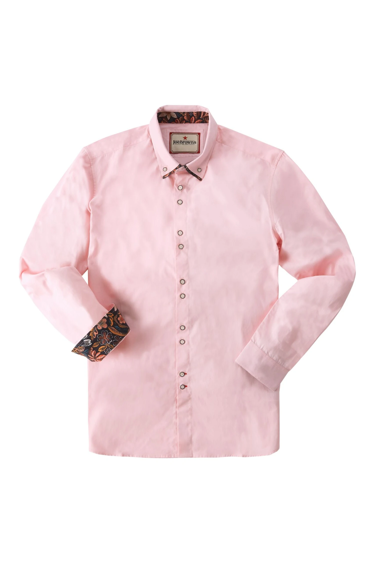 Freshen your summer wardrobe with this pink, long-sleeved shirt. To achieve that smart, sophisticated look, we added plenty of dapper details, like the double collar, contrast buttons and under-collar print. A sharp shirt designed to brighten your day, just team it with your favourite black jeans and boots to really make an impact. Approx Length: 79cms.