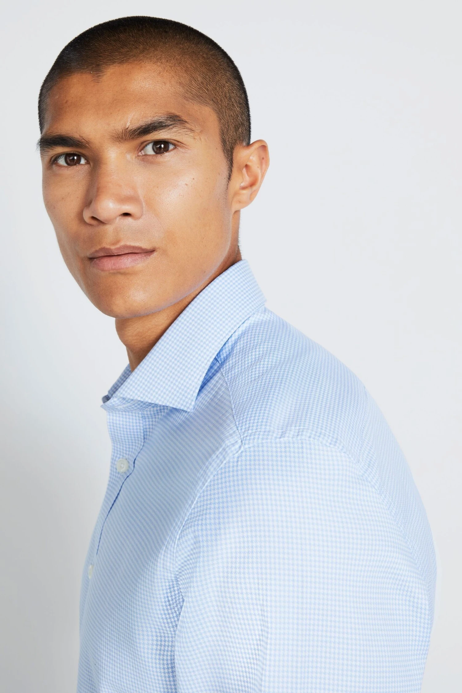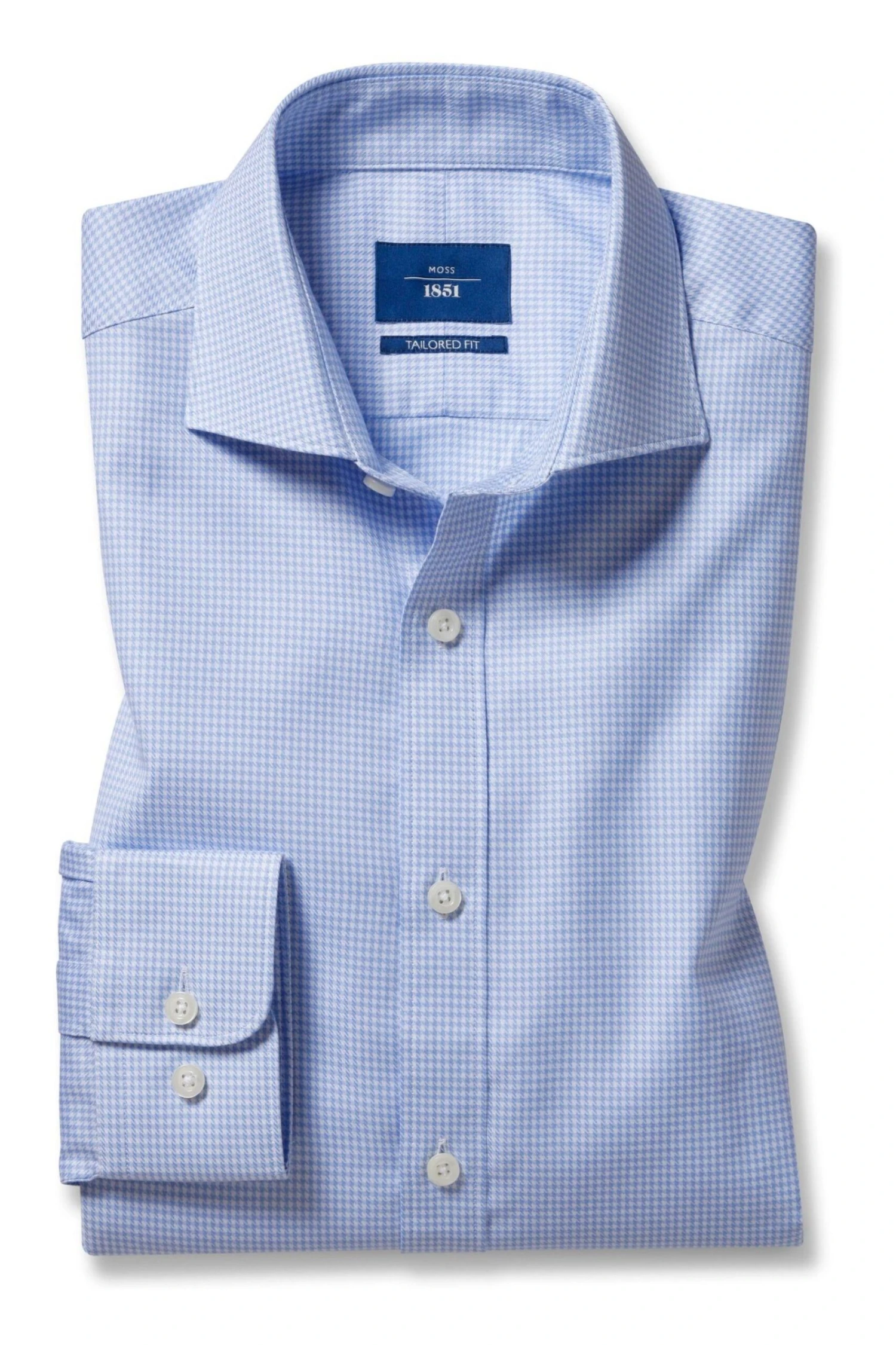 MOSS Blue Tailored Fit Sky Puppytooth Single Cuff Shirt