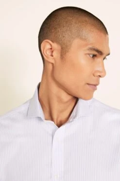 MOSS Tailored Fit Sky Blue Single Cuff Twill Stripe Non-Iron Shirt