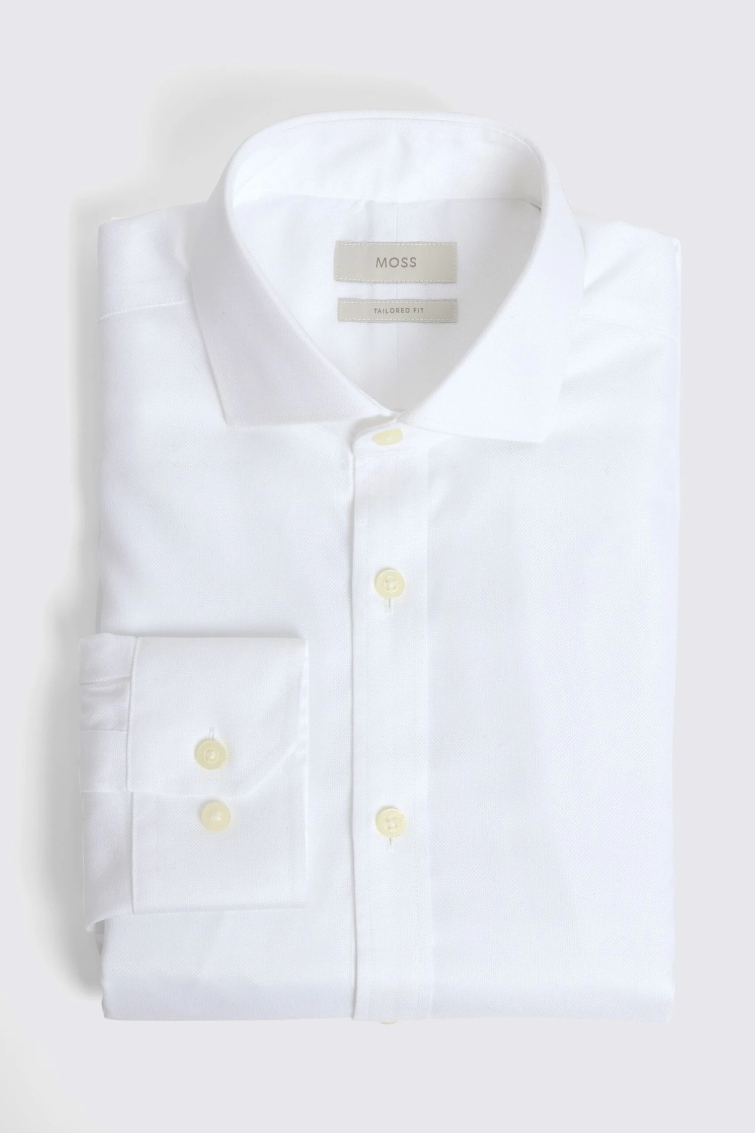 MOSS Tailored Fit White Textured Zero Iron Shirt