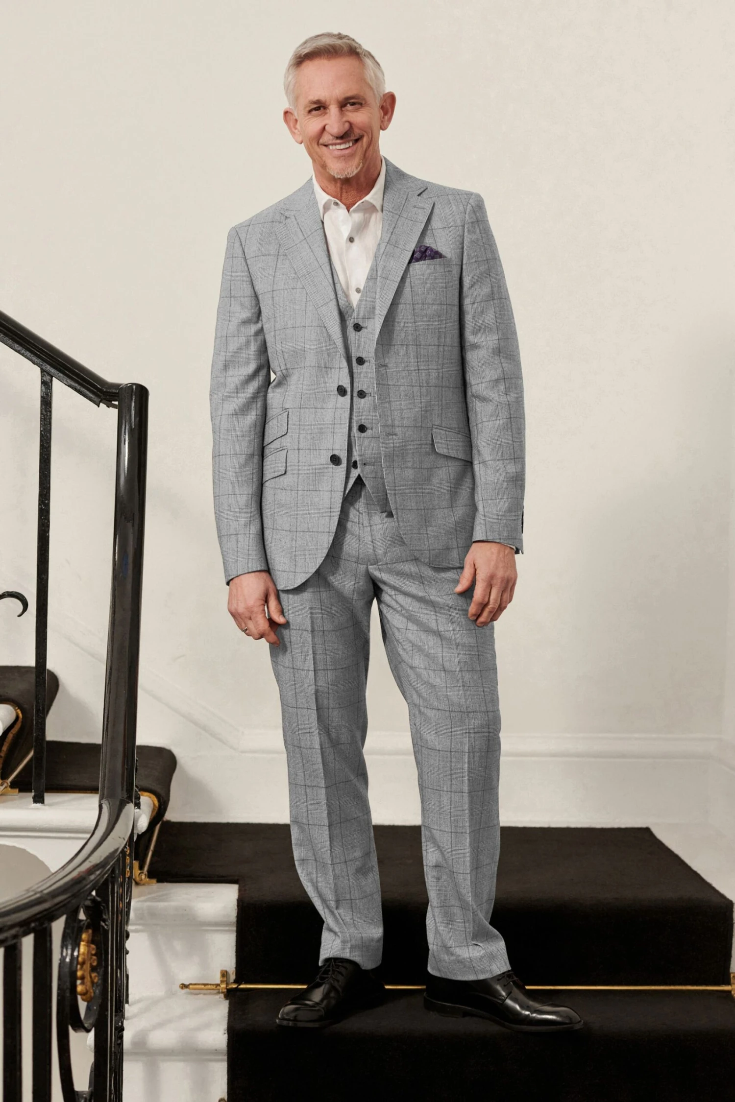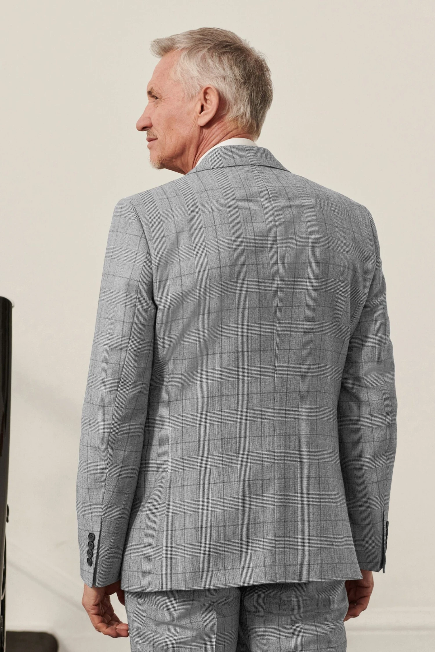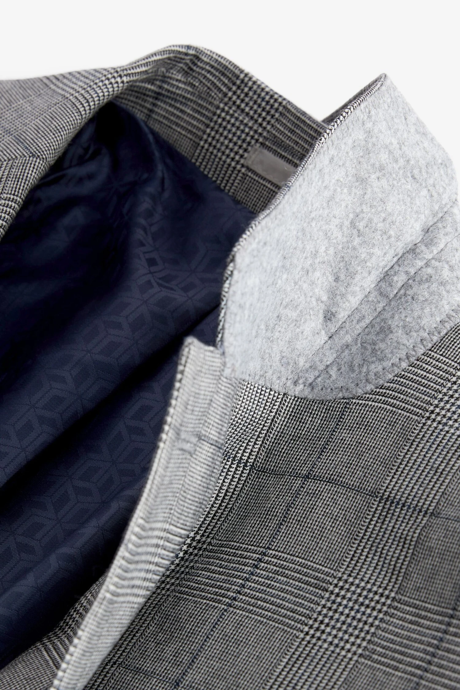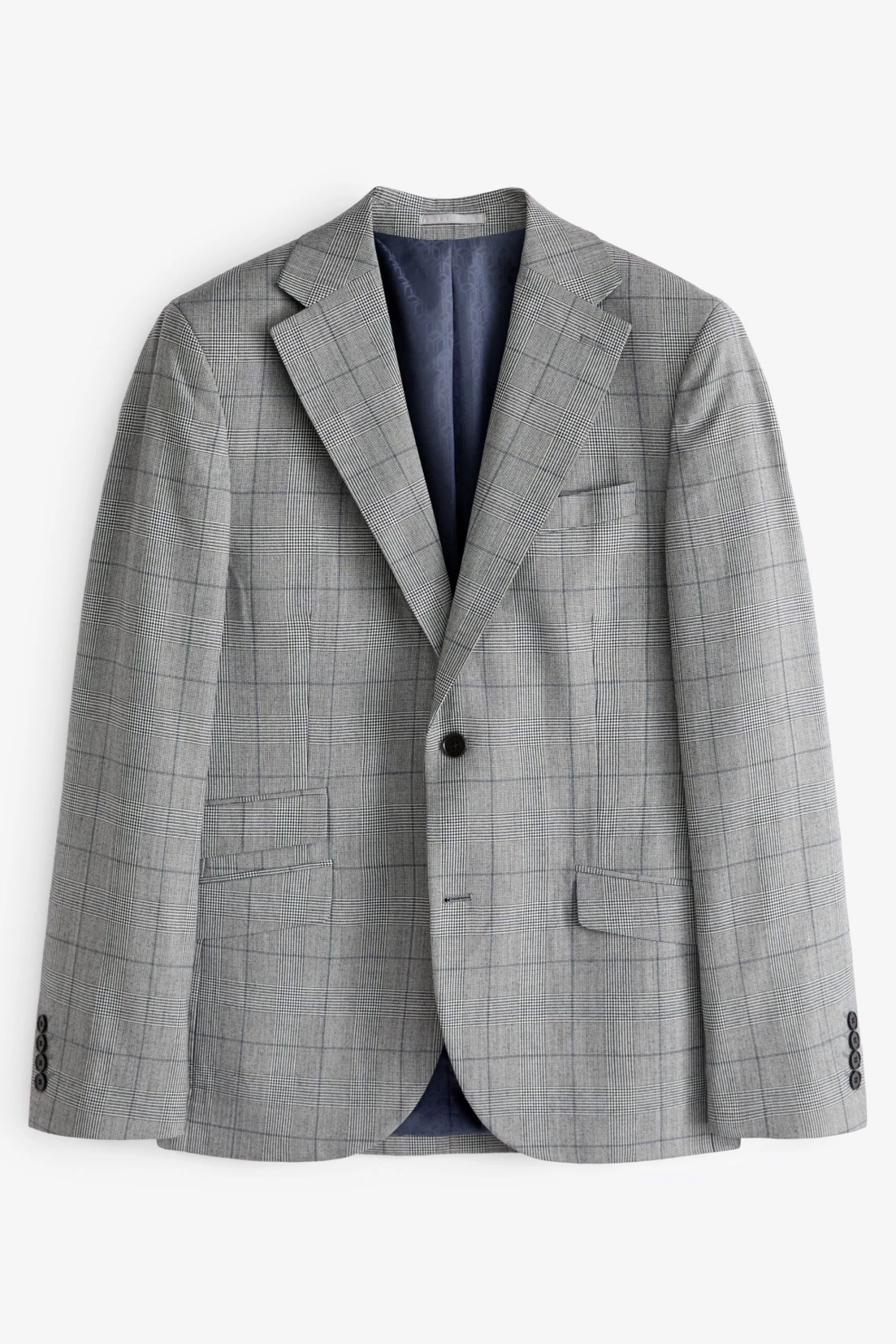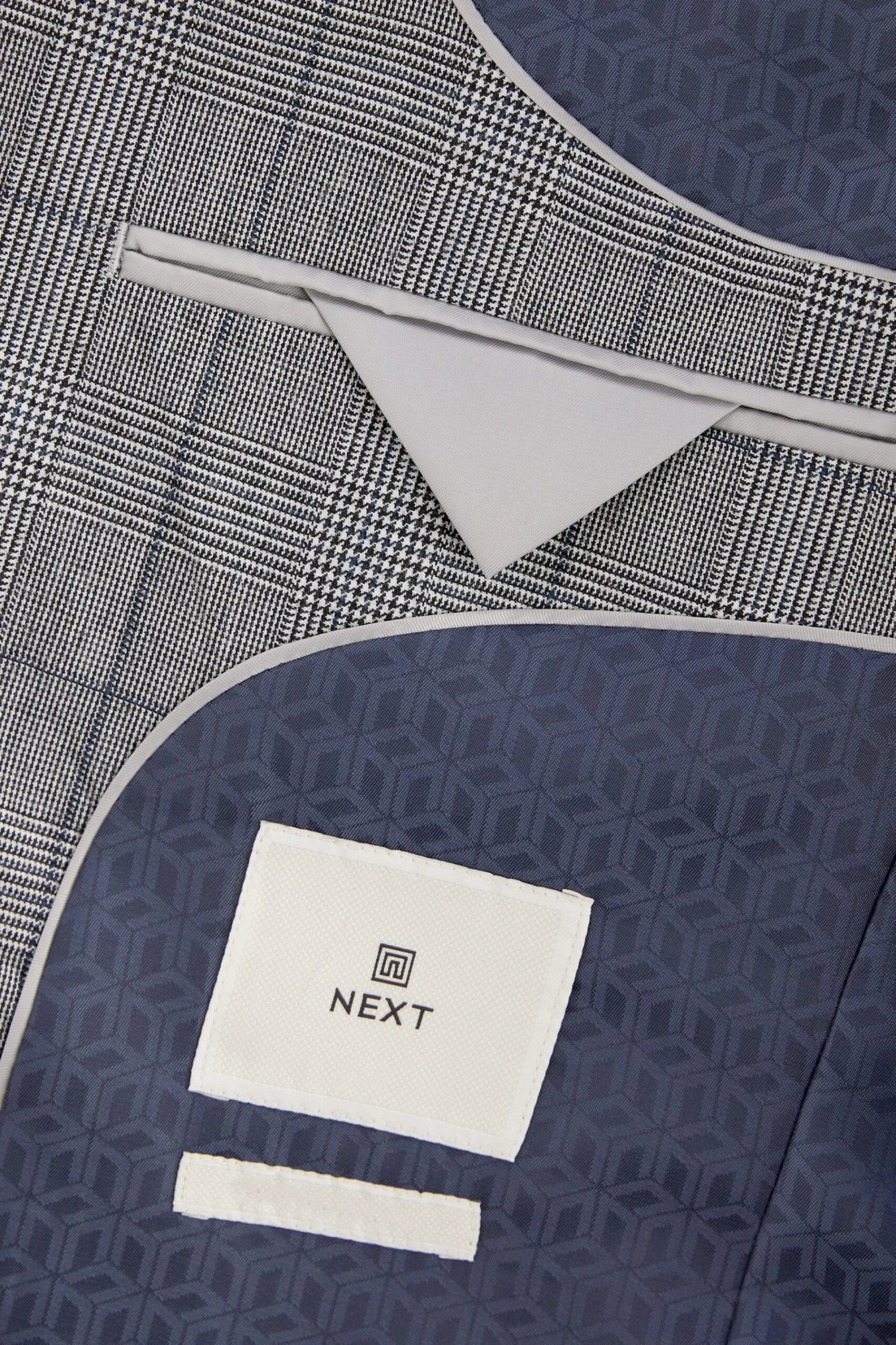 Next Mid Grey Tailored Fit Wool Blend Check Suit: Jacket