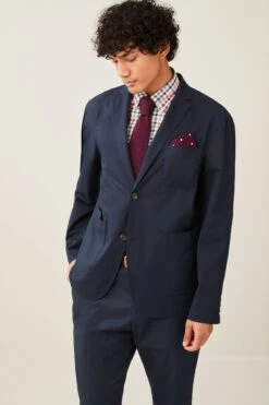 Next Navy Blue Relaxed Fit Cotton Rich Suit: Jacket