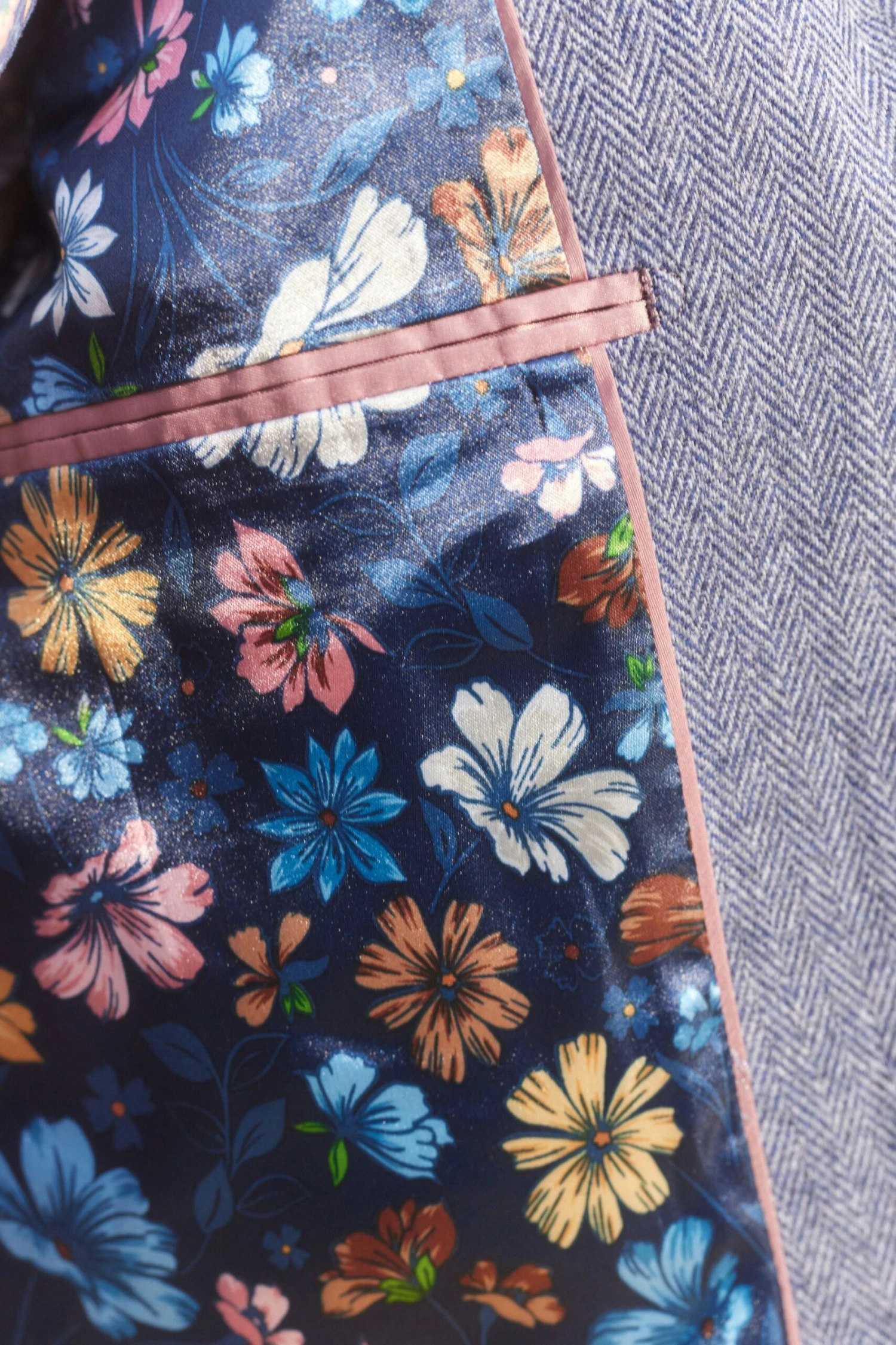 Heritage styling at its best. Crafted with an Italian wool-blend fabric from Nova Fides, this jacket features a modern herringbone pattern and flamboyant floral lining on the inside. We've finished the look with a notched lapel, patch pockets and a centre-back vent for ease of movement. Wear yours with our matching trousers and polished lace-ups.