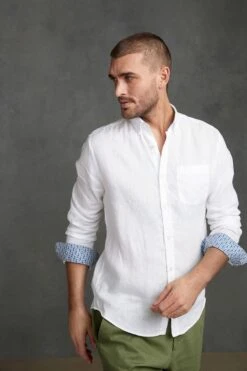 Made from premium 100% linen with contrast trim to the collar and cuffs, you're about to look and feel more stylish than ever. Style with a linen trouser and boat shoe for a smart casual look. And one more thing, don't shy away from the creases, embrace them. That laidback, wrinkled finish is all part of the linen shirts charm.
