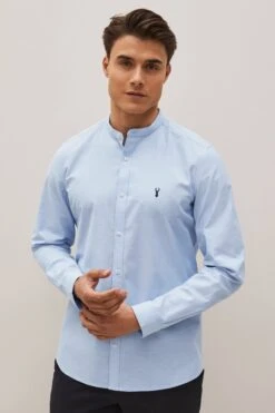 Next Stretch Oxford Long Sleeve Shirt With Grandad Collar