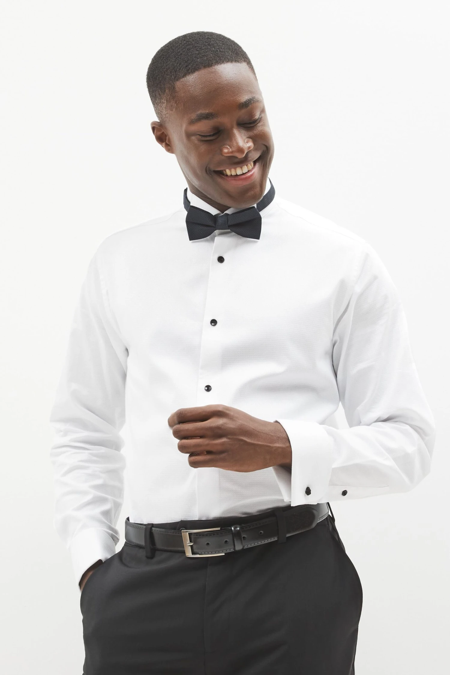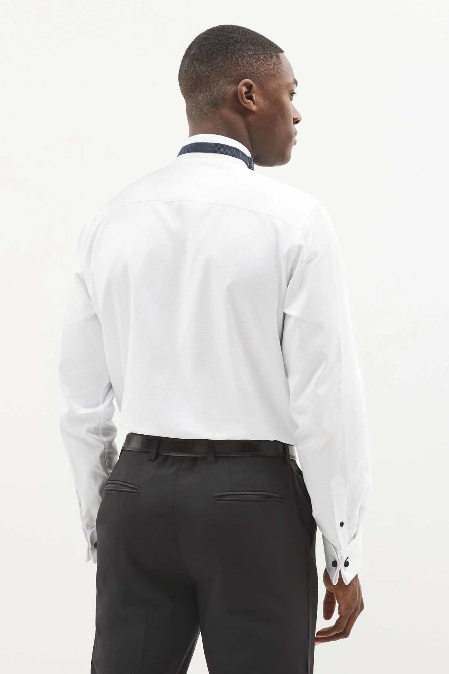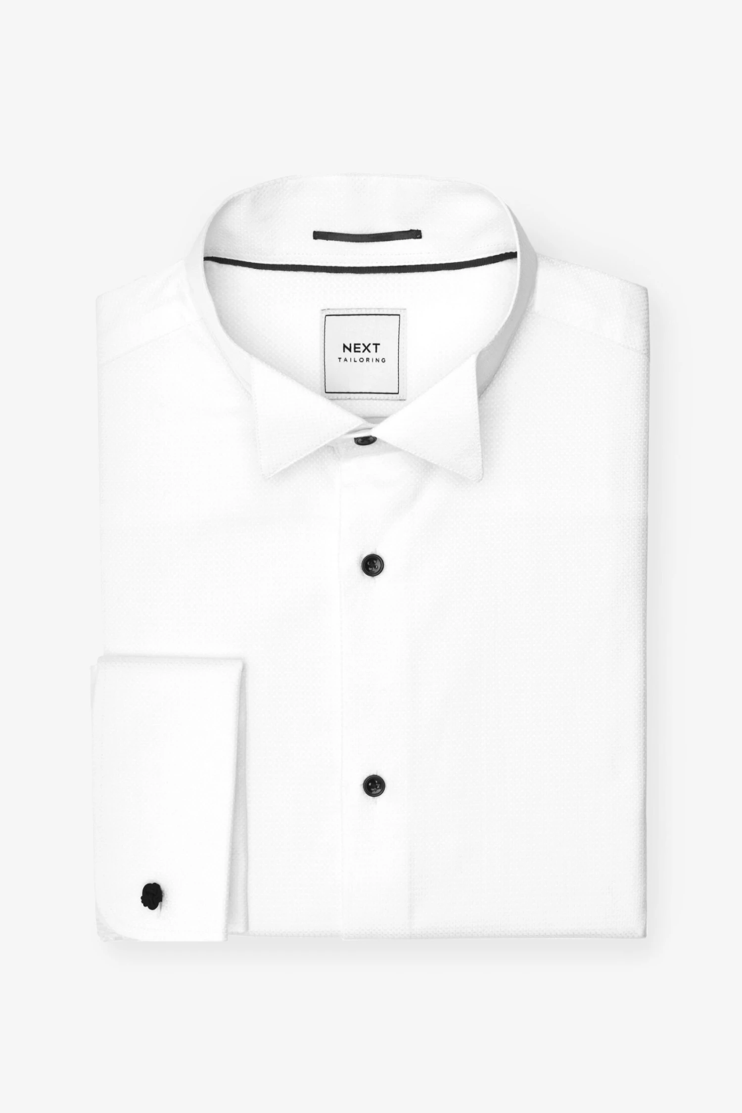 Next White Textured Regular Fit Double Cuff Dress Shirt