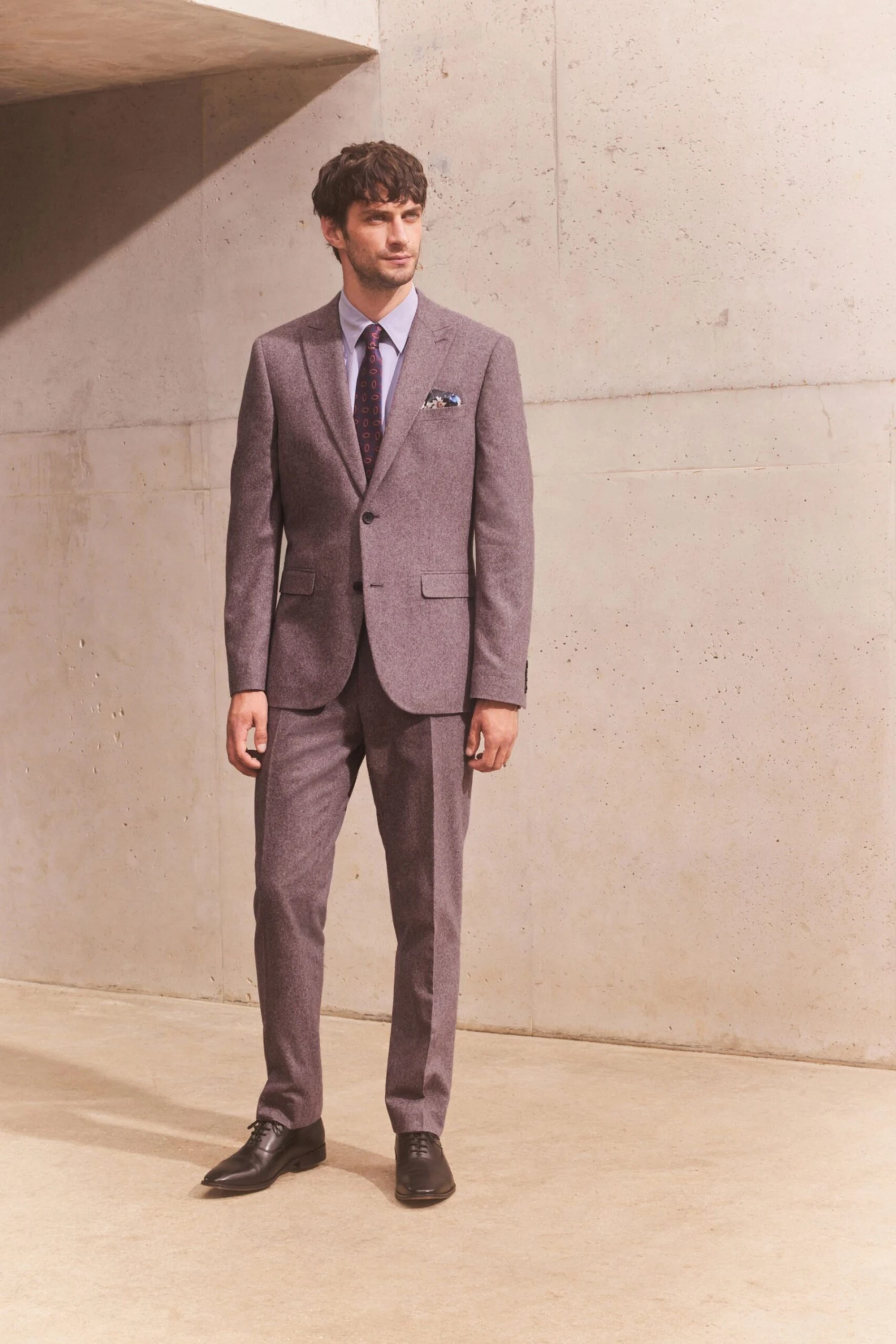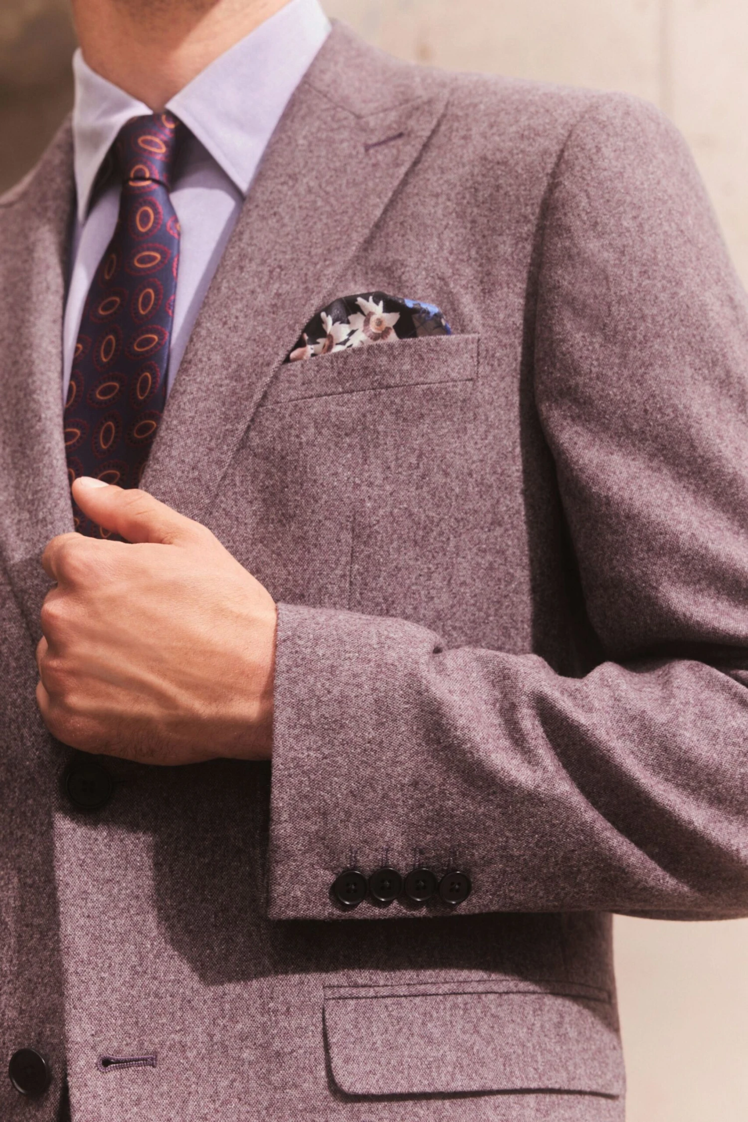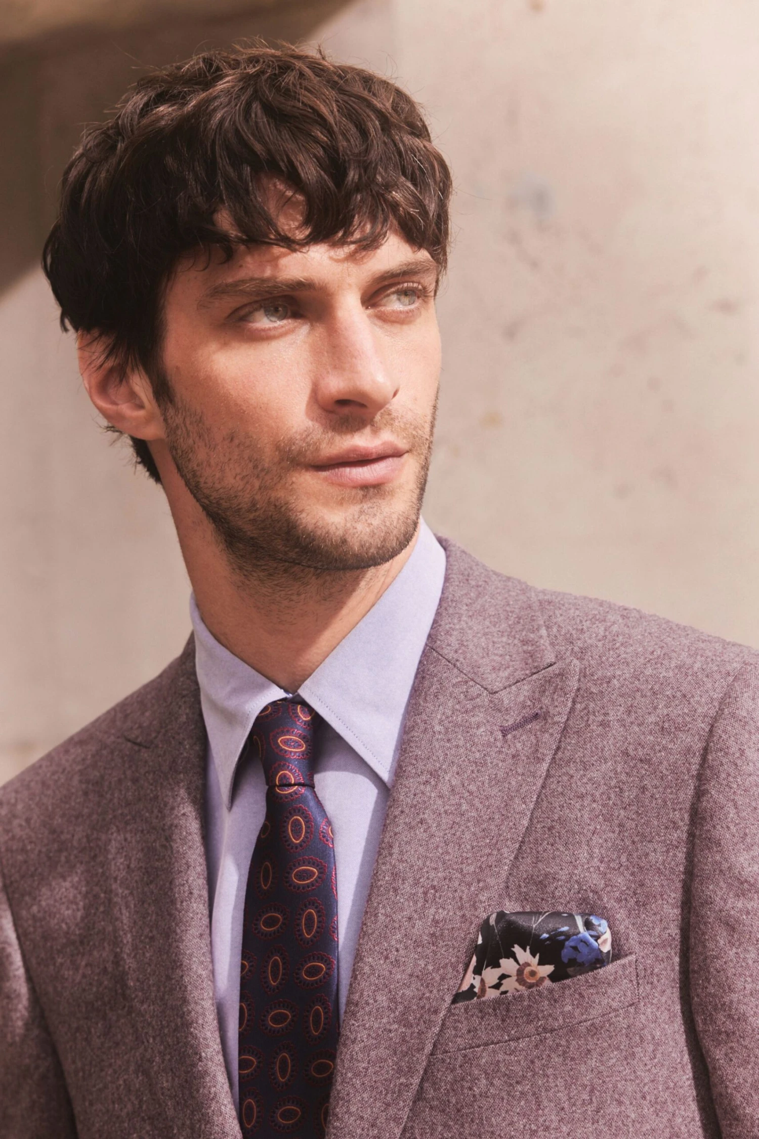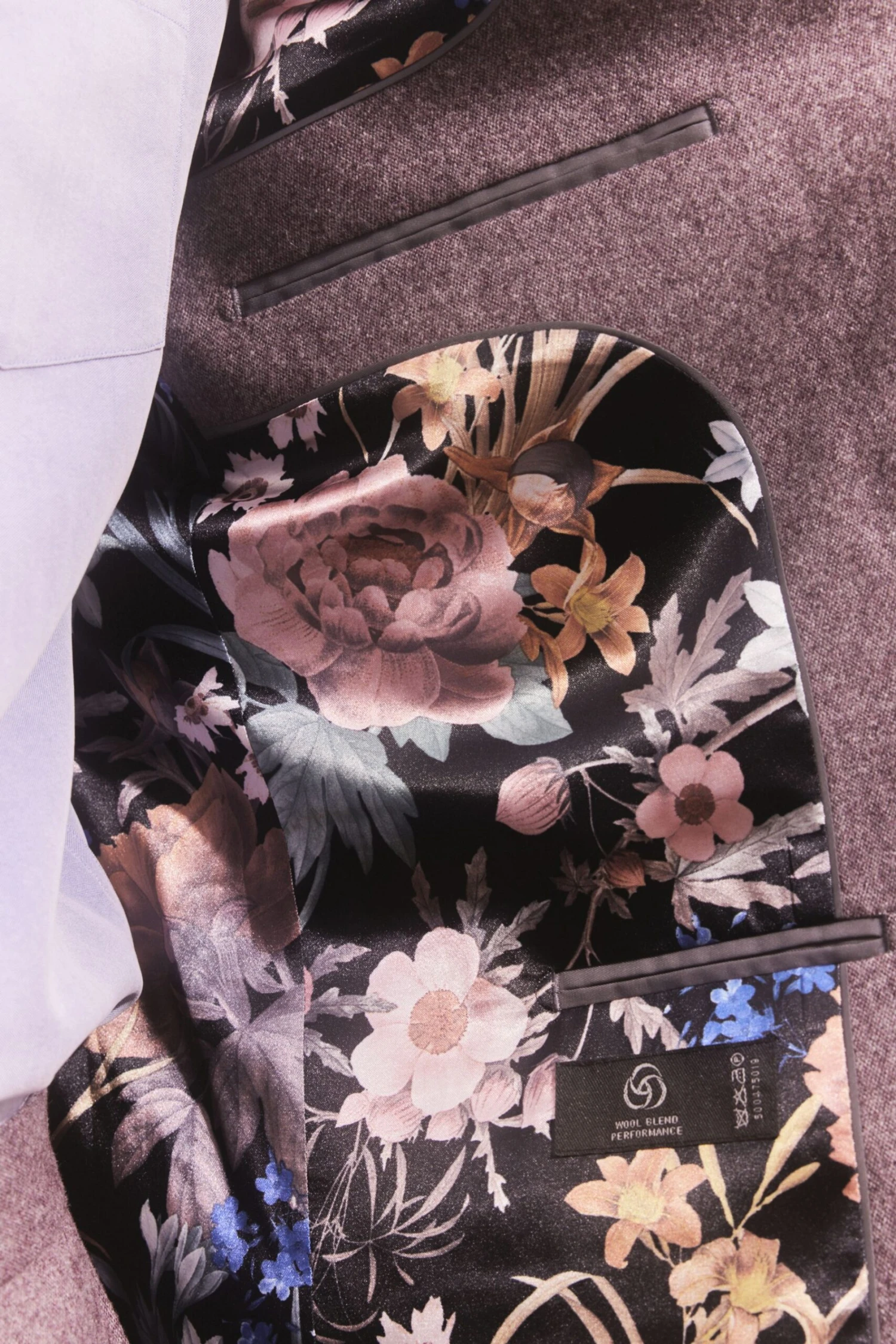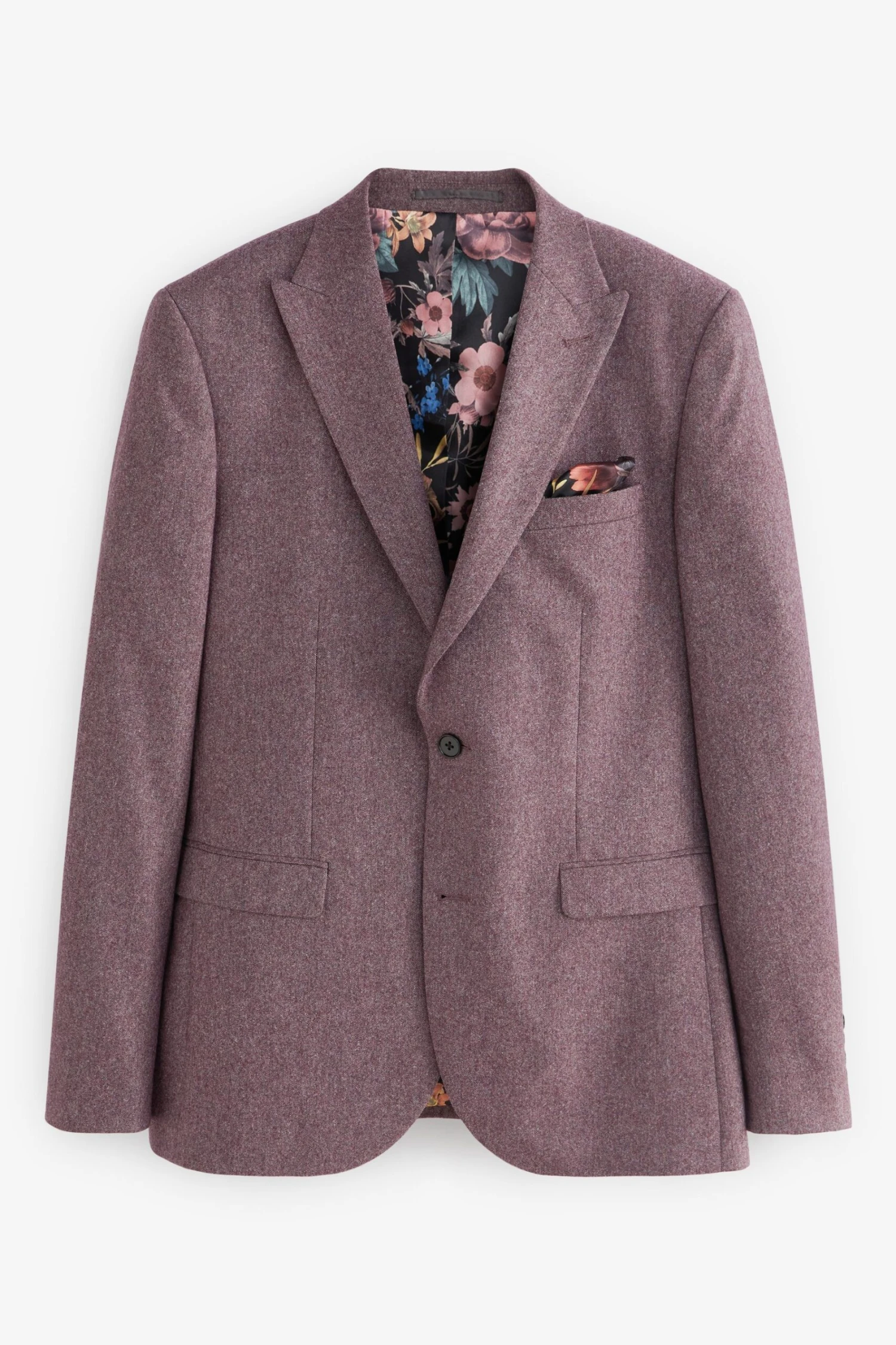 A smart and sleek suit that will see you through any occasion this summer. For weddings or workwear, this textured jacket has a peak lapel and printed lining. Two button fastening brings in the waist and neat flap pockets sit to the front.