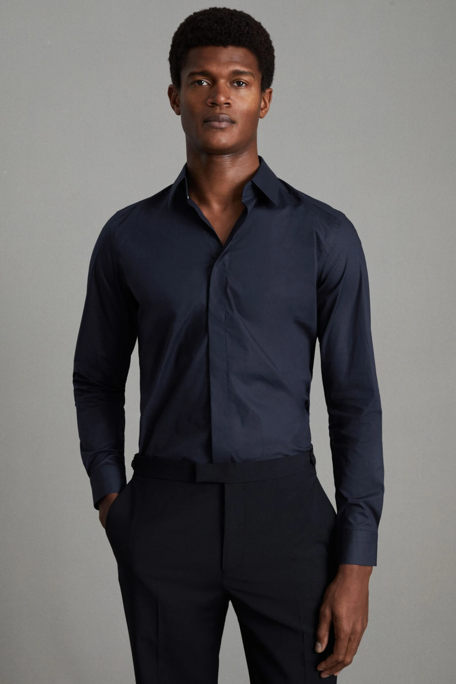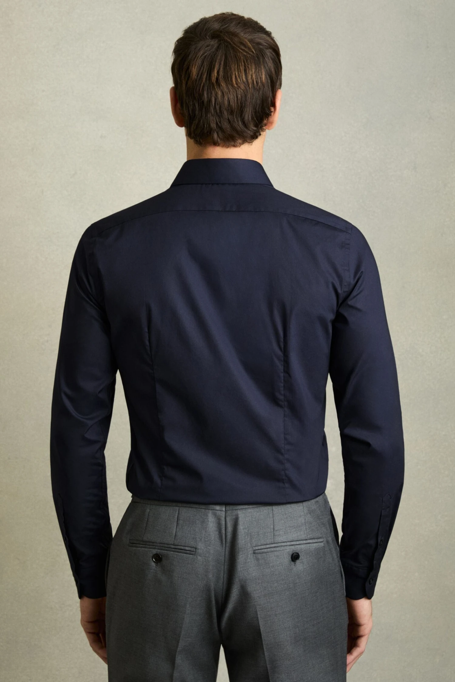 The Kiana shirt is crafted from a cotton poplin fabric with 4% elastane stretch. The two-way stretch allows this shirt to be cut to a slim contemporary silhouette without compromising movement and comfort. This shirt has a versatile purpose where it can be worn casually with jeans and trainers, or dressed up formally with a suit and tie for a modern tailored look.