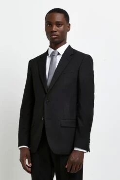 Slim fit. Inside pocket. Chest welt pocket. Front flap pockets. Two button fastening. Notch lapels. Long sleeve. Double back vent.