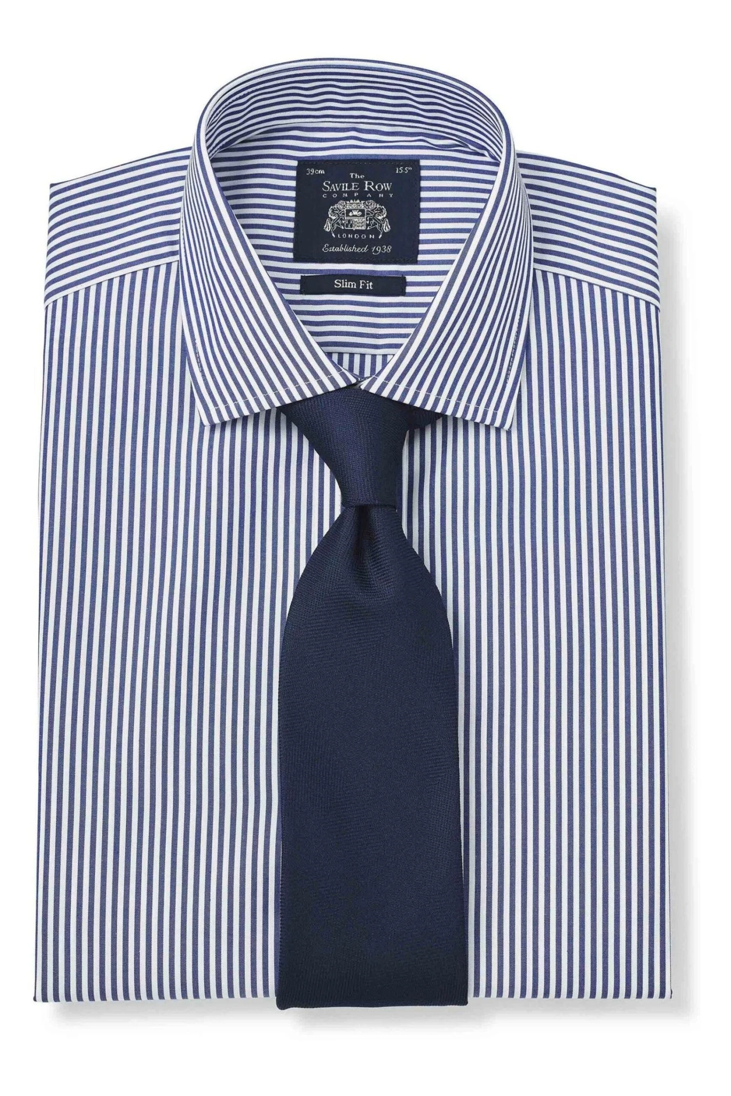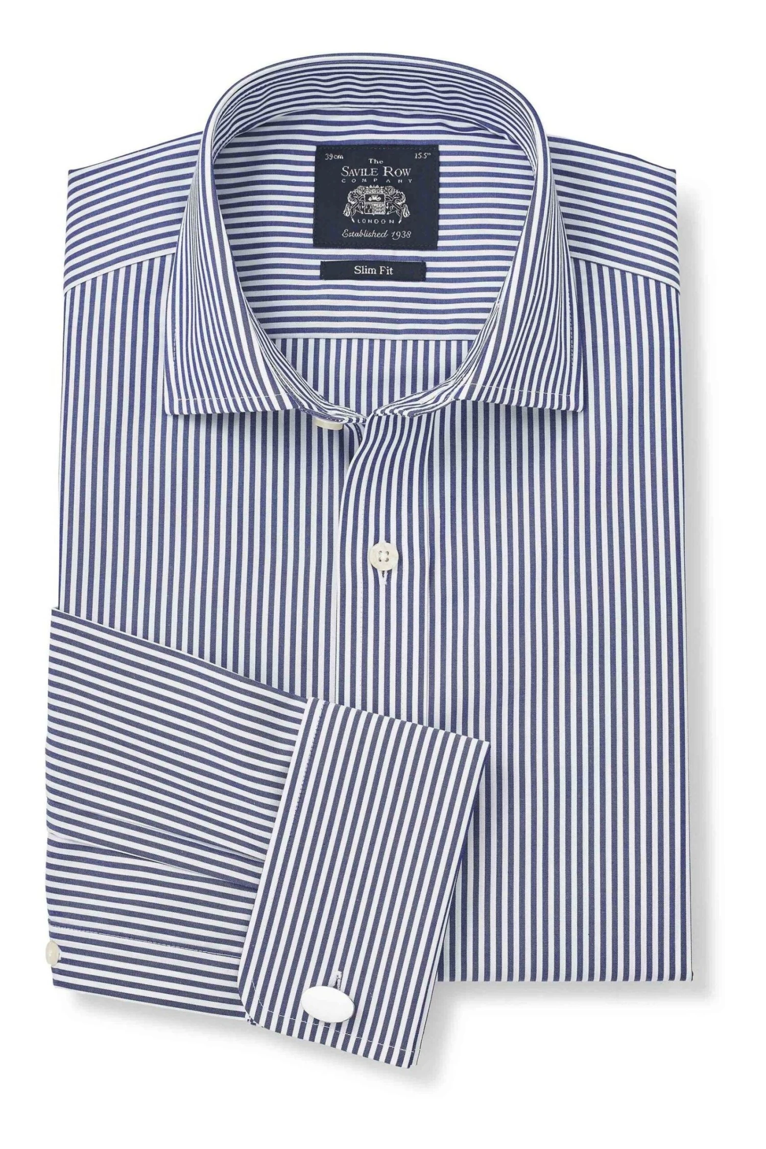 Savile Row Co Navy Bengal Stripe Slim Fit Double Cuff Shirt