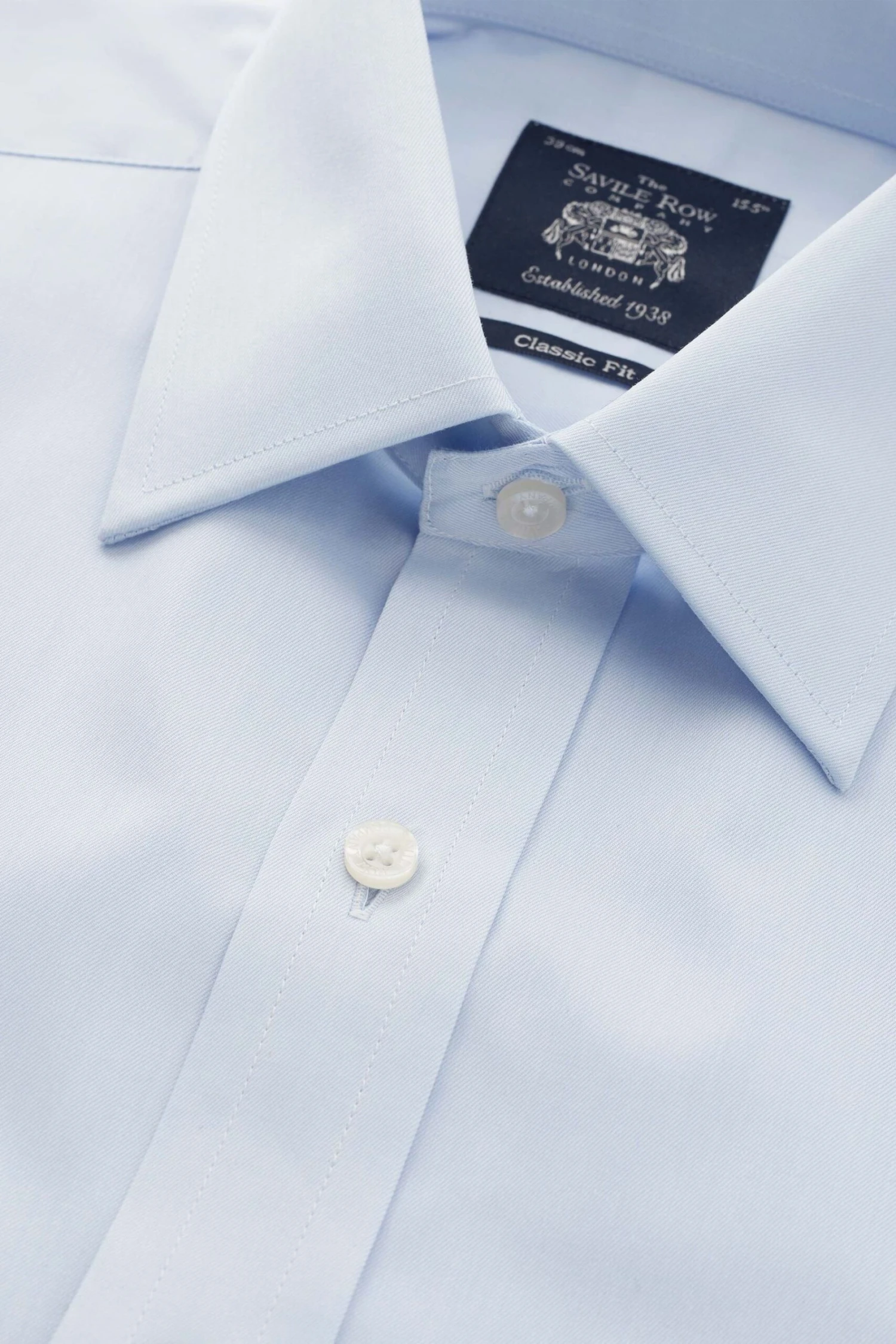 Savile Row Co Sky Blue Twill Classic Fit Double Cuff Shirt