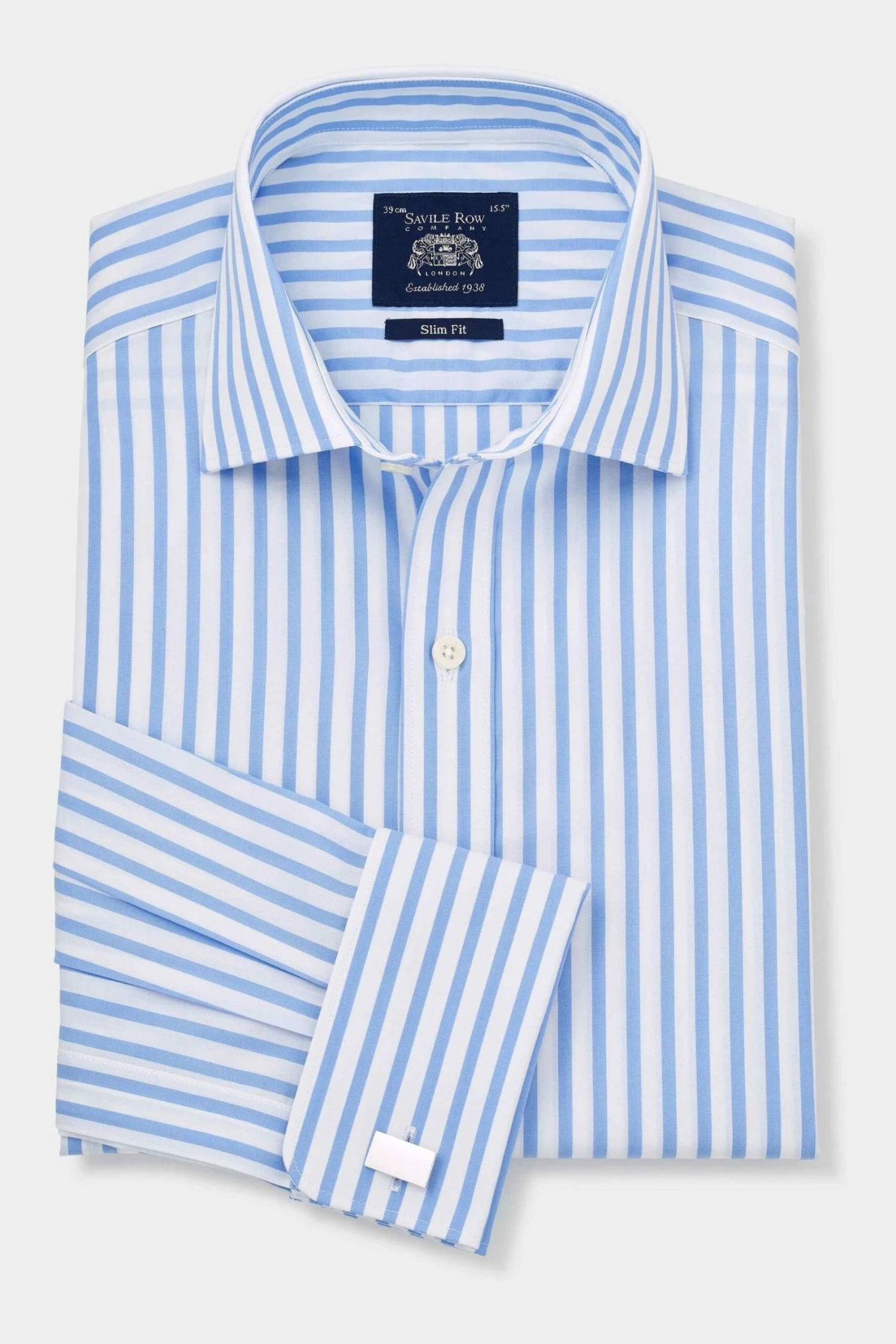 Savile Row Company Sky Blue Stripe Slim Fit Double Cuff Shirt