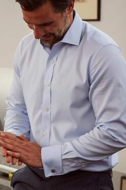 Savile Row Company Sky Blue Stripe Slim Fit Double Cuff Shirt