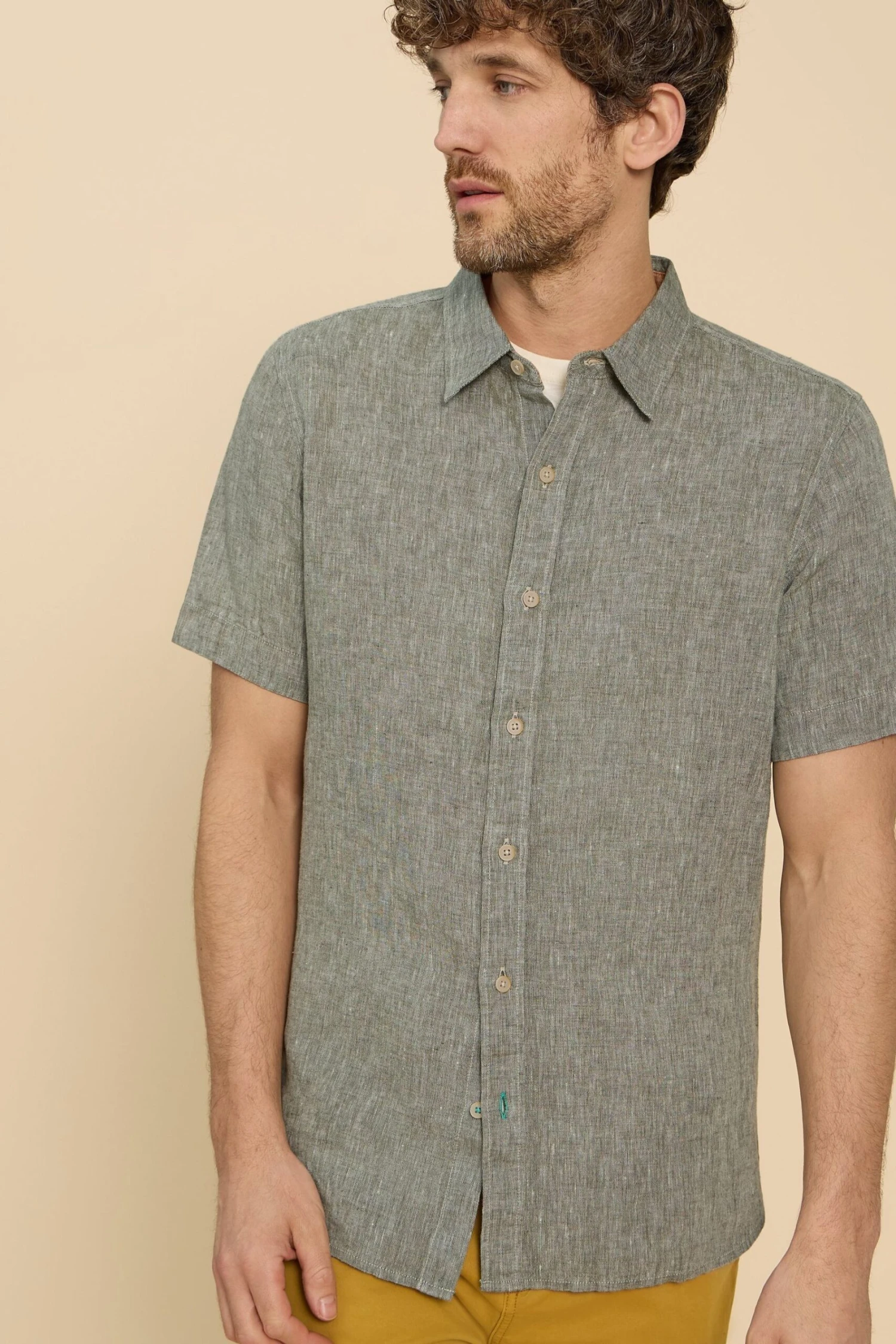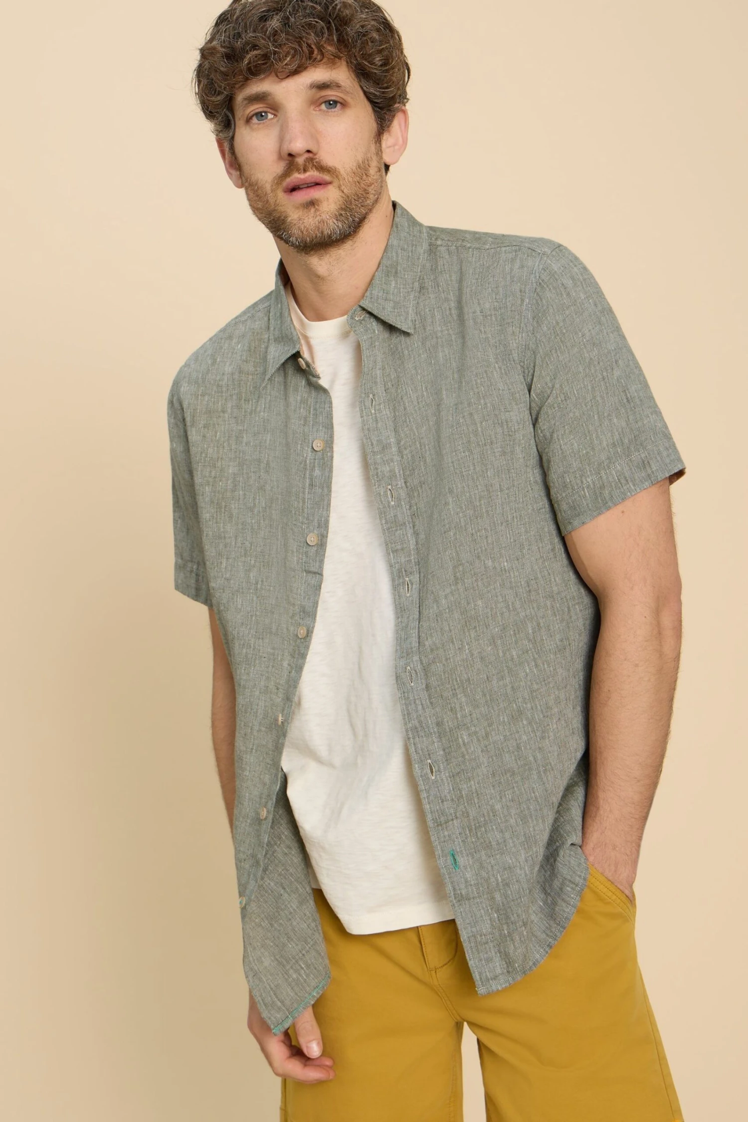 White Stuff Green Pembroke SS Linen Shirt
