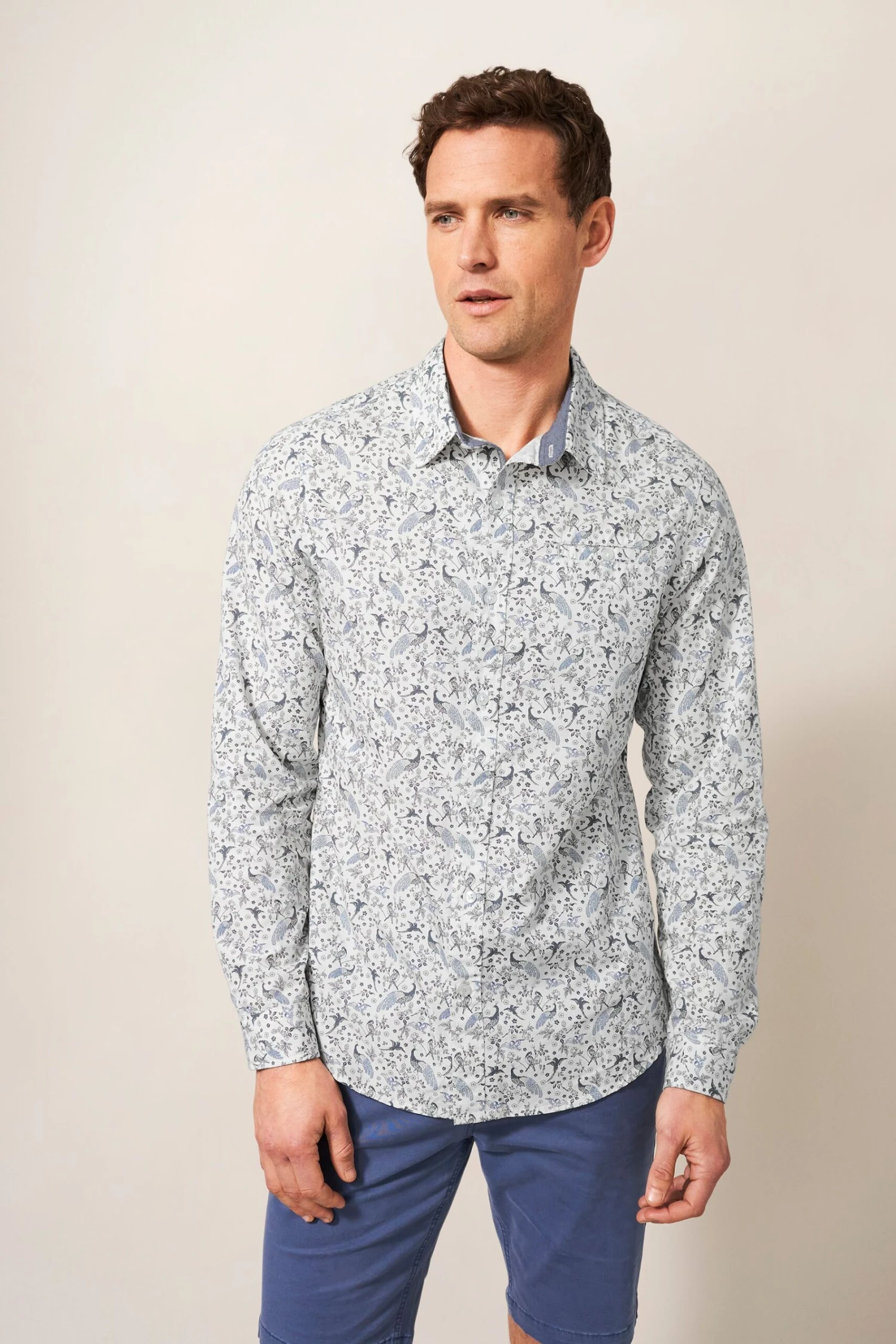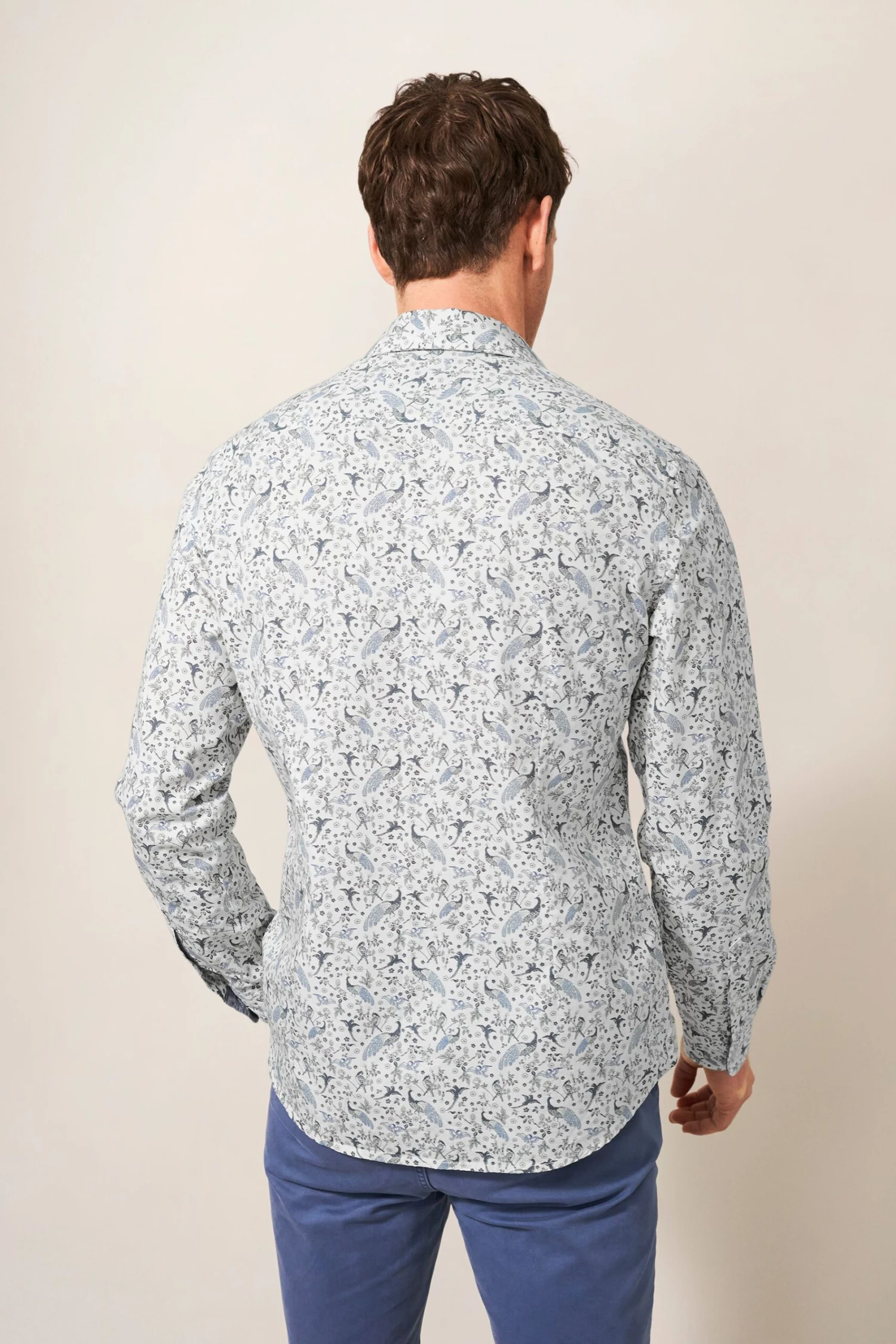 White Stuff Slim Fit Cream Peacock Printed Shirt